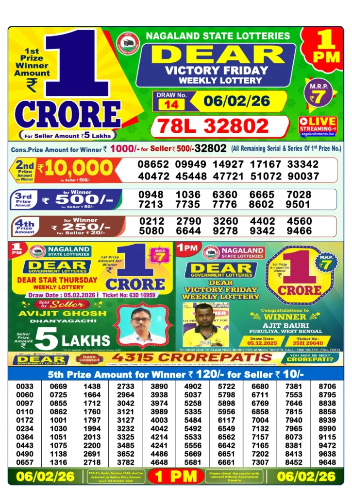 With its transparent system, affordable tickets, and bumper rewards, the Nagaland State Dear Lottery continues to be one of the most trusted and loved lotteries in India. If you haven’t checked your ticket yet, download the official Dear Lottery Result PDF and see if luck has favored you today.