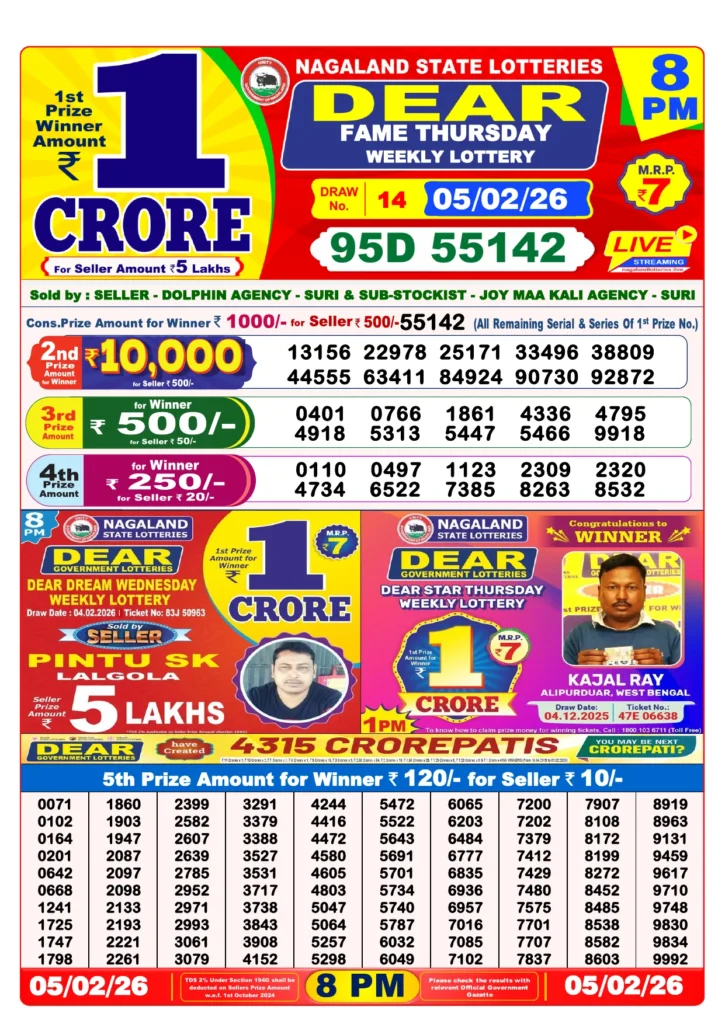 The results for 5 February 2026 have been declared. Here’s a breakdown of the draws: